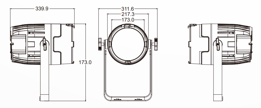 ELECTRICAL ● Input Voltage: 90-240VAC 50/60Hz ● Max power consumption: 300W ● Power and Current: 297 W, 3.24 A @ 110 V, 60 Hz ● Power and Current: 295 W, 3.22 A @ 110 V, 50 Hz ● Power and Current: 292 W, 1.53 A @ 230 V, 60 Hz ● Power and Current: 293 W, 1.54 A @ 230 V, 50 Hz ● Power Linking: 4 units @ 110 V; 8 units @ 230 V PHYSICAL ● Housing Material: Die-cast magnesium aluminum, black ● Cooling: Temp controlled, noiseless fan for forced air ● Temperature (Ambient): 4 °F to 113 °F (-20 °C to +45 °C) ● Dimensions: 311.6x340x396mm ● Weight: 7.5kgs ● IP rating: IP66 CERTIFICATIONS ● Certifcations: CE, RoHS Standard Included ● 1x JalPar7 Quad Zoom ● 1x Seetronic PowerCon IP65 power cord ● 1x Manual ● 1x Safety Cable Optional Accessories ● DMX Cable IP ● IP Rated EtherCon Cable ● OMEGA ● Clamp ● Flight case |
