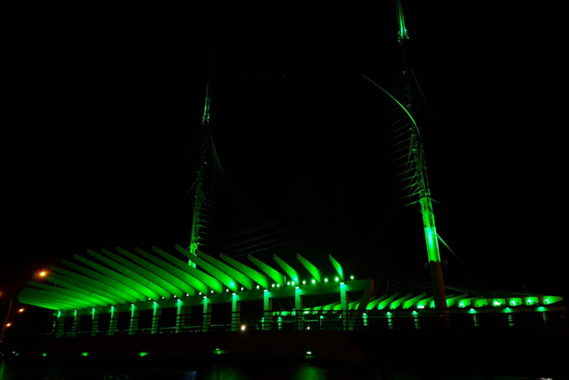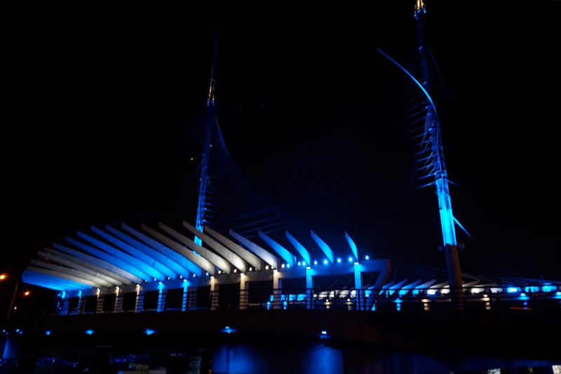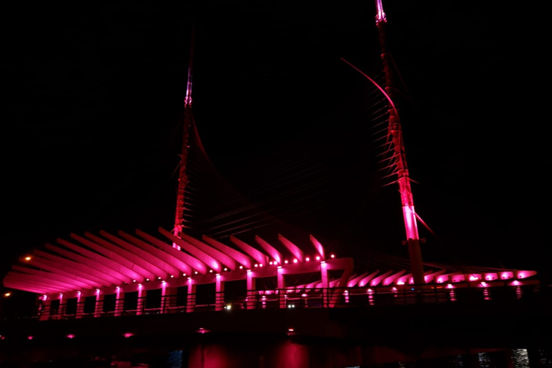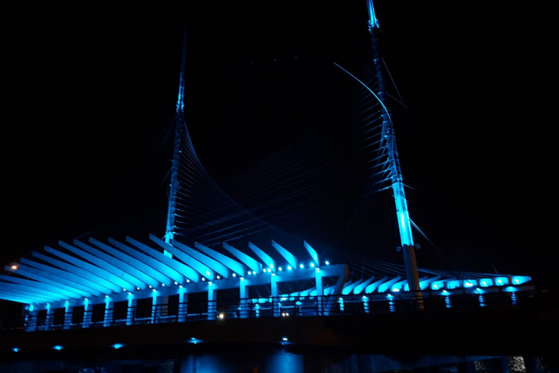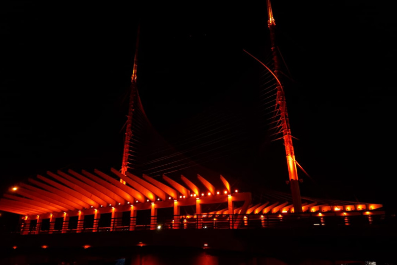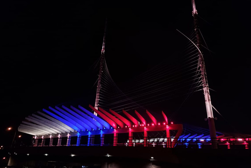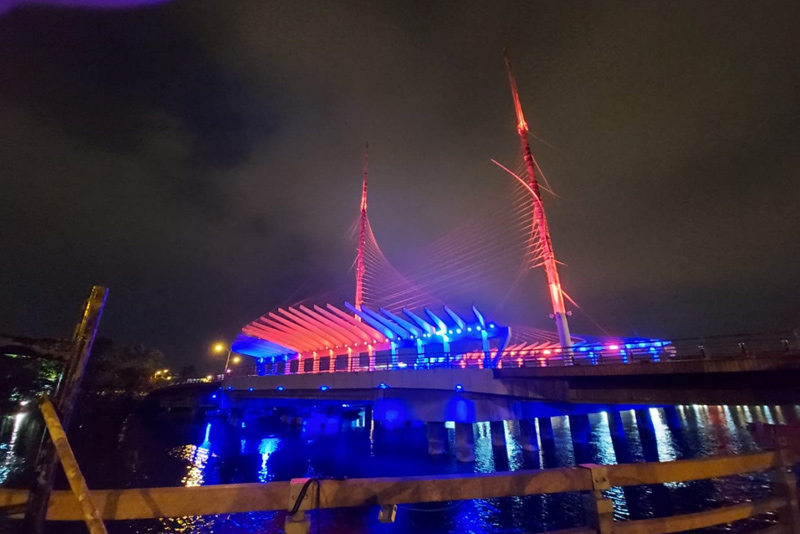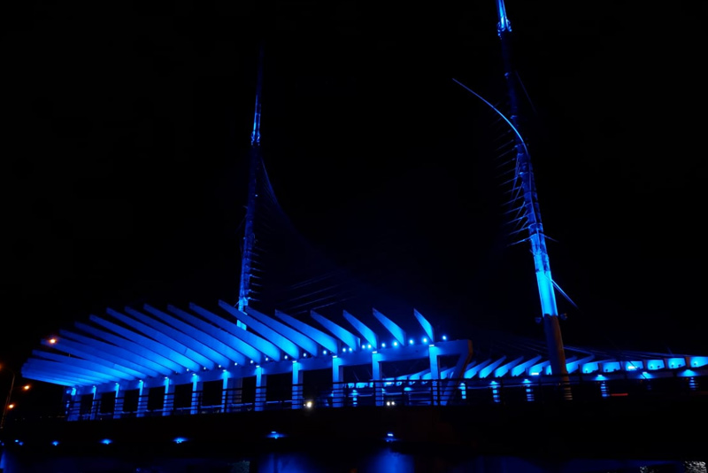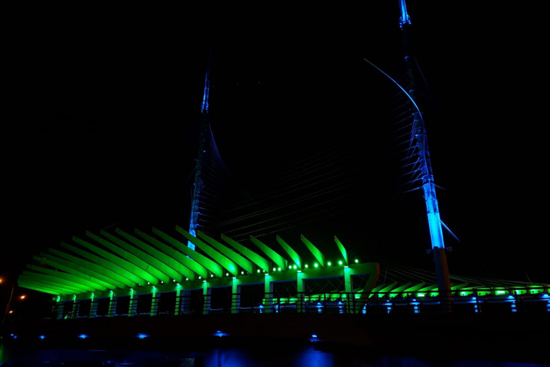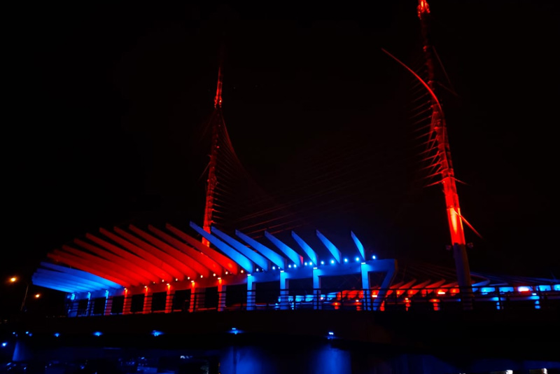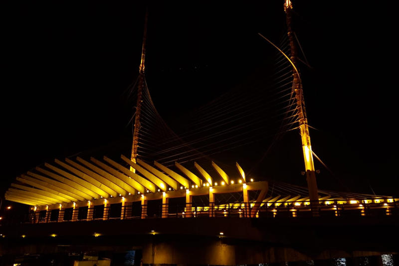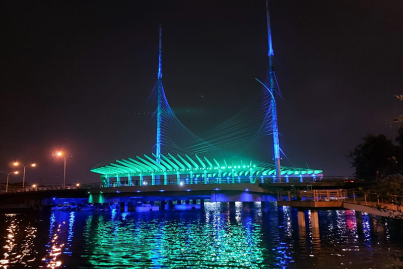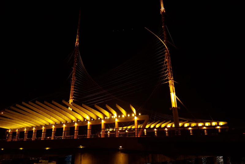 The wonderful lighting design is based on the unique oar design of the bridge. The spotlights are dyed from the inside at a small angle. The wonderful RGBL dyeing system adds vitality to the bridge.