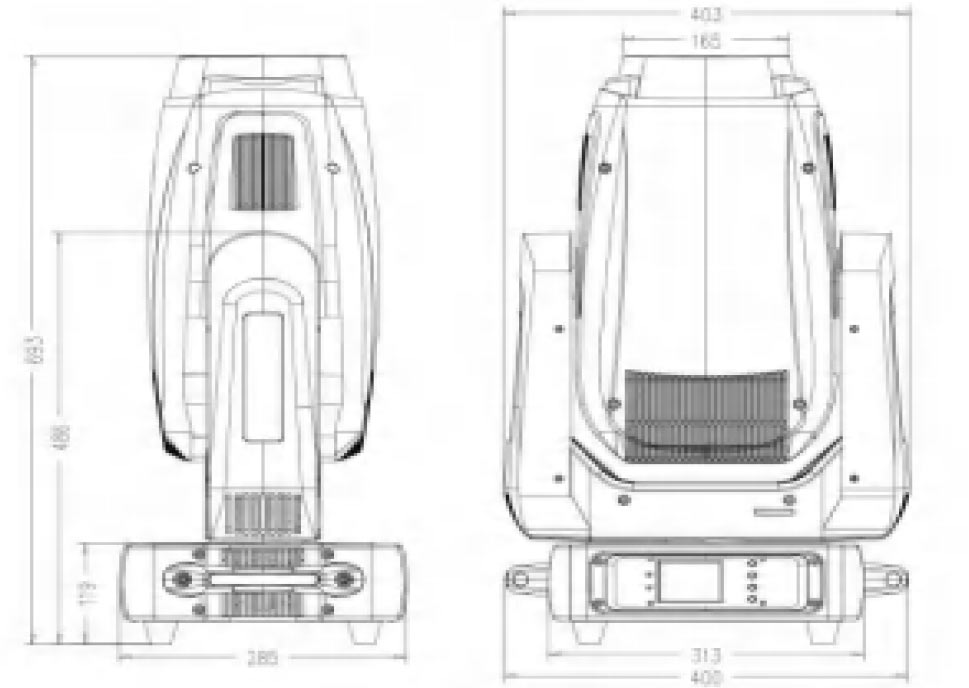 LIGHT SOURCE ● LEDs: 700W white LED engine, CRI>90 OPTICS ● Beam angle: 4°~50° DYNAMIC EFFECTS ● 1x CMY wheel CONTROL ● Protocols: USITT DMX512, RDM |