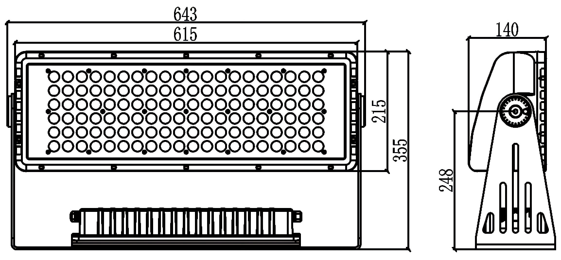 ELECTRONICS ● Dimmer: linear 0 ~ 100% electronic dimmer ● Operating temperature: -20° ~ +50° ELECTRICAL ● Mains power supply: 100-277V - 50/60Hz ● Max power consumption : 300 W PHYSICAL ● Body: die-cast aluminum, grey/black ● Cooling: convection, overheating protection ● Signal connection: 3-pin signal cable in&out, 3m, open ends ● Power connection: 3-pin power cable, 3m, open ends ● Dimensions: 645x140x355 mm ● Weight: 13.0 kgs ● IP rating: IP66 CERTIFICATIONS ● Certifcations: CE, RoHS |