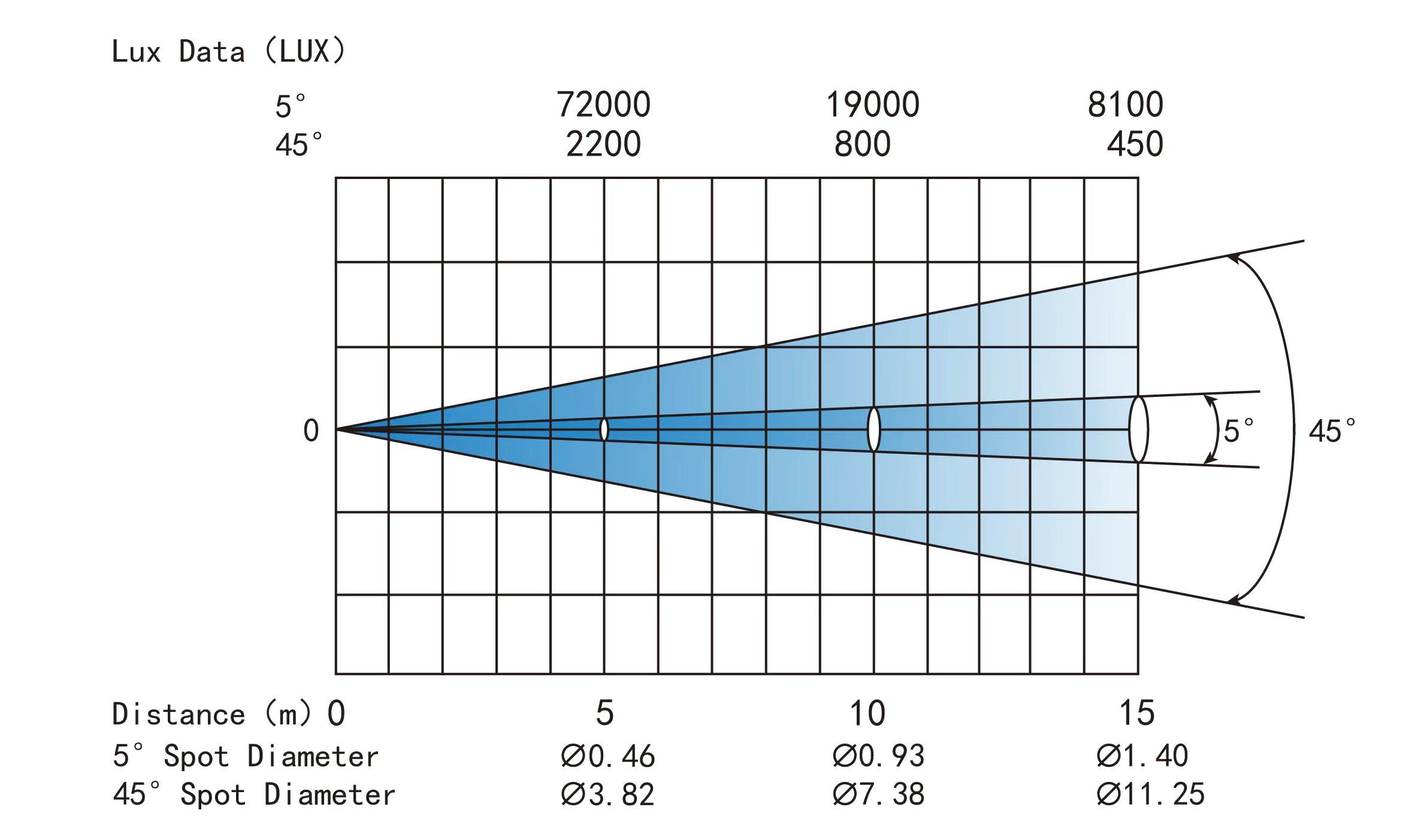 ● 72000lux @5meter