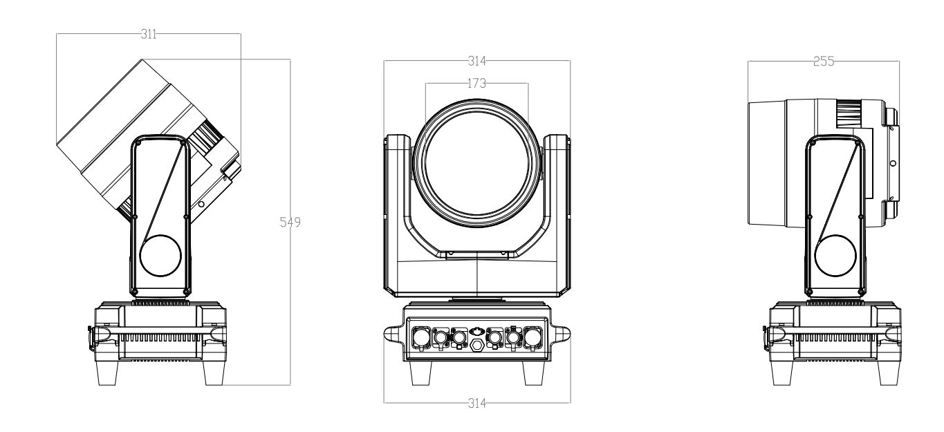 LIGHT SOURCE ● Light Source: 7x 50W RGBL ● CRI: Ra≥83 @3200K ● Lux: 38,693 Lux@5meter ● Color Temperature (range): 1800K-10000K ● Life Expectancy: 50,000hours OPTICS ● Beam Angle: 3.5°-45° ● Field Angle: 7.5°-56° DYNAMIC EFFECTS ● Pan and Tilt: 540°/247° ● Pan and Tilt Ranges: 540°,360°,180°pan/247°,180°,90° tilt ● Dimming: 24-bit, extremely smooth electronic dimming ● Dimmer Modes: 4 selectable dimming modes available ● Dimmer Curves: 4 selectable dimming curves available ● Strobe/Shutter: Electronic ● Strobe Rate: 0 - 30 Hz ● Color Temperature Presets: Yes ● Selectable PWM: 600Hz, 1200Hz, 2000Hz, 4000Hz, 6000Hz, 25000Hz CONTROL ● Protocols: DMX512, RDM, optional(Art-Net, sACN) ● DMX Channels: 16/31/34/40/62ch ● Firmware Upgrade: Built-in program copying function, DMX, USB-C CONNECTIONS ● Power Connection: seetronic powerCON TRUE In/Out IP65 ● Signal Connection: seetronic 3/5-pin XLR In/Out IP65 ● Data Connection: IP65 RJ45 Ethernet In/Out(optional) ● Firmware Connection: USB-C |